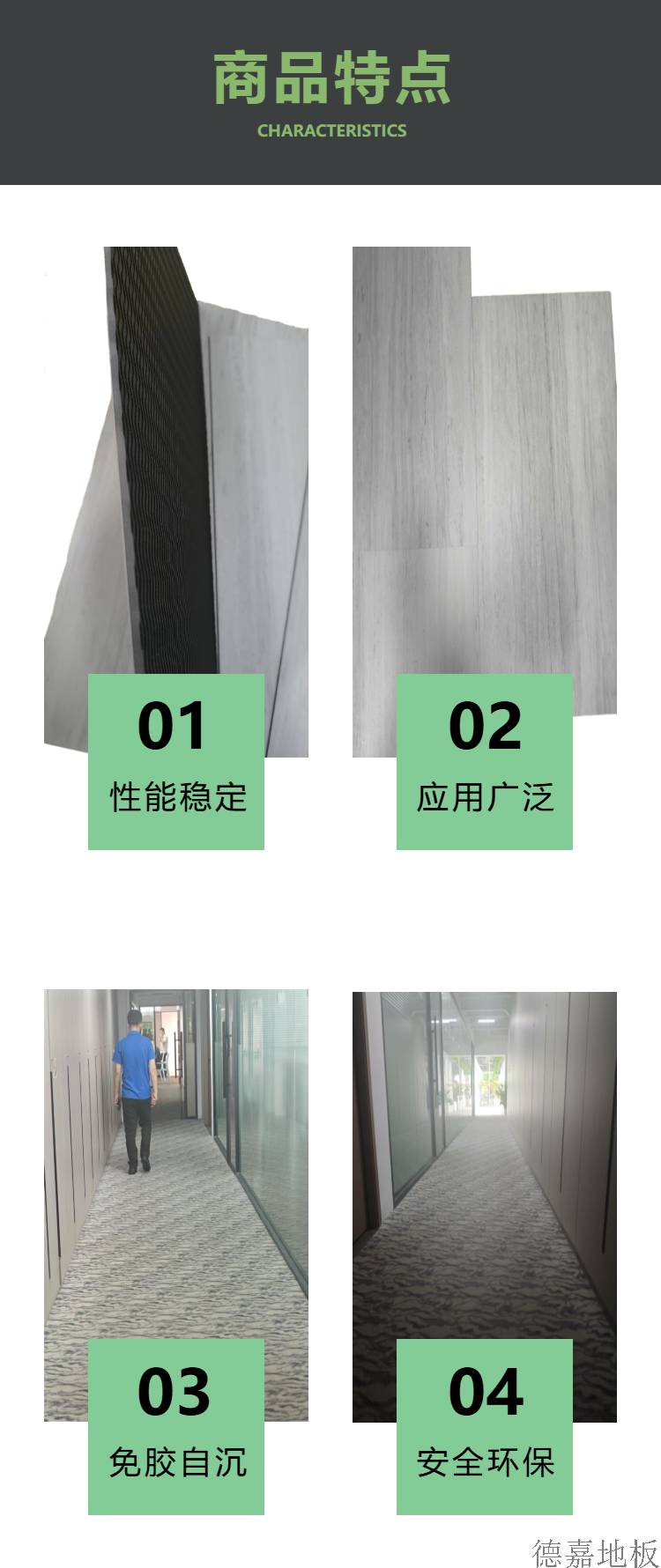 德嘉 LVT自沉免胶吸附地板 5.0mm厚度 适用办公室等